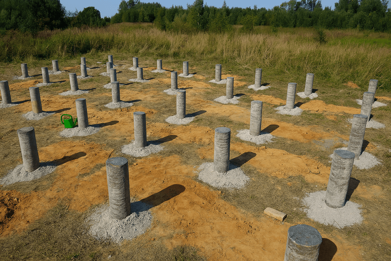 Обычно фундамент ТИСЭ обходится дешевле, чем монолитная плита или ленточный фундамент, особенно на маленьких участках и в условиях сложных грунтов. Это делает его бюджетным решением для загородных домов, бань и небольших построек.