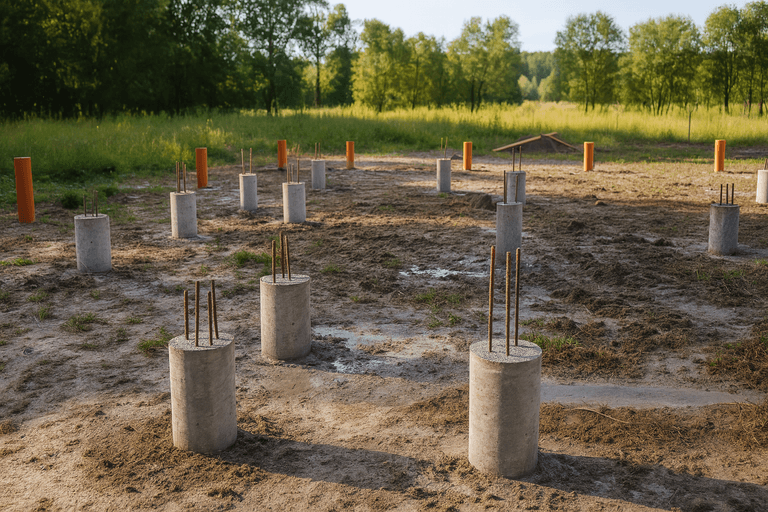 Технология фундамента ТИСЭ основана на бурении скважин с уширением основания и армировании с последующей заливкой бетоном. Такой фундамент считается оптимальным решением для строительства домов различного размера, особенно в условиях слабонесущих или пучинистых грунтов. Мы предлагаем реализацию фундамента ТИСЭ под ключ с соблюдением всех норм СНиП и точной проработкой каждого этапа.